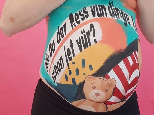 Die Schwangerschaft ist eine ganz besondere Zeit, die viele Paare und werdende Mamas gerne kreativ gestalten und festhalten wollen. Ein Bellypainting (zu deutsch: Babybauchbemalung) bietet sich hierfür natürlich ideal an!