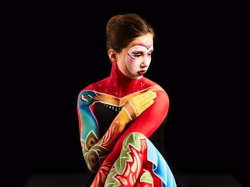 Super! Generell gelten die gleichen Bedingungen wie für die Gesichtsbemalung, jedoch kann ein ganzes Bodypainting je nach Motivwunsch auch sechs Stunden oder mehr dauern. Du solltest also entsprechend viel Zeit und Kondition mitbringen. Ich freue mich auf deine Ideen!